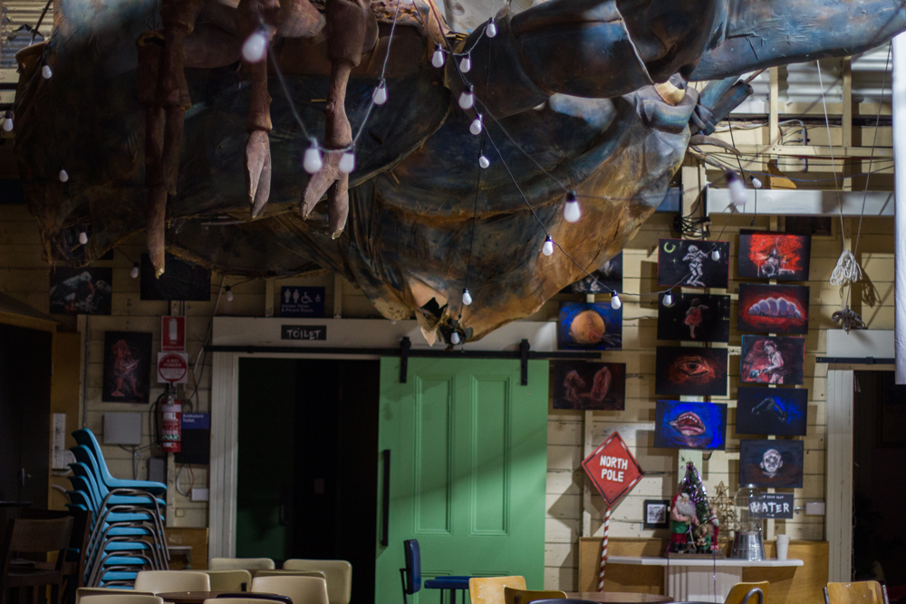 Pictures hanging at Snuff Puppets Headquarters, The Drill Hall, Footscray.