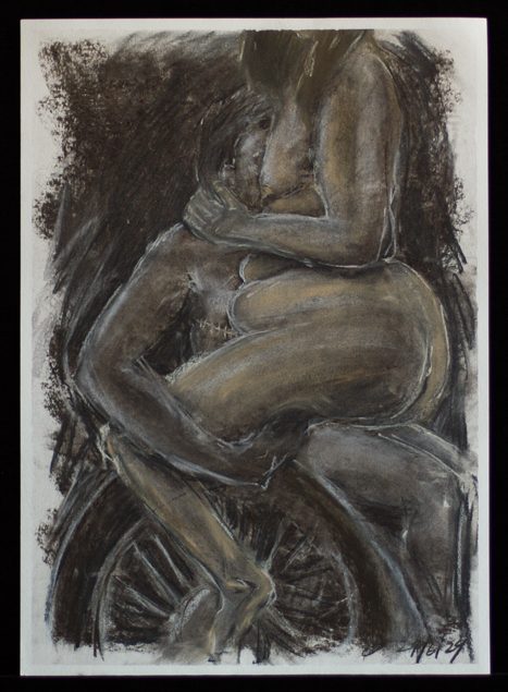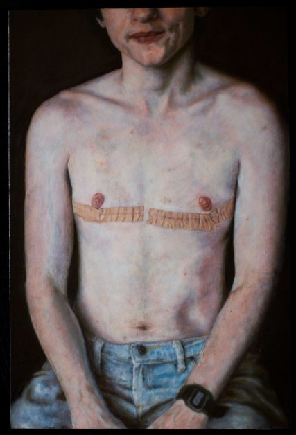 A photo of an orb, shining like metal gold. The start of thighs create the structure for labia and a t-cock.